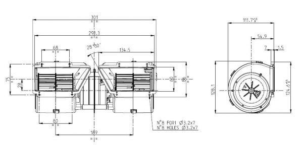 Doppelradialgebläse (Bürstenmotor)