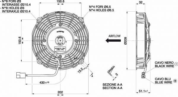 | Bauart | Axiallüfter (Bürstenmotor) |